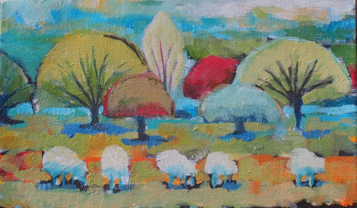 Sheep – Acrylic on Canvas 10″x6″ $225