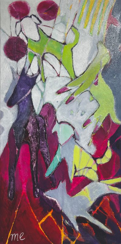 Her process unfolds through a dynamic interplay of bold, textured strokes and fine, delicate lines. She begins by engaging the tension between positive and negative space, allowing form and emptiness to guide the work forward. Layer by layer, she explores the subtle territories between looseness and structure, preserving rhythm and motion as the painting evolves. When she senses herself becoming overly fixated, Marianne will often turn the canvas upside down, shifting her perspective and inviting the work to speak in new ways.