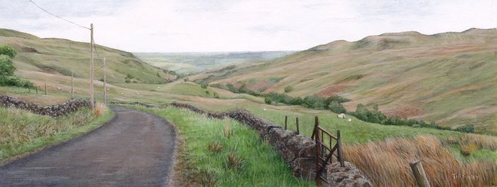 Previous Image Next Image The Long Road Home The Long Road Home – $ 820.00 Framed – Acrylic – 4″ W x 1.5″ H – Miniature painting on paperboard
