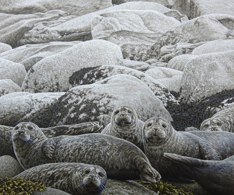 Through it all, gratitude rings daily in his heart. He is honoured and grateful that people purchase his work and embrace it in their lives; that the Royal Canadian Mint has featured his work on multiple coins; that his work was chosen for the book cover of Witness: Selected Poems by award-winning Canadian author/poet Patrick Lane, and for prominent inclusion in the book Amazing Animals by Margriet Ruurs; that Her Imperial Highness Princess Takamado of Japan has one of his paintings in her collection; and for much, much else. He is grateful each day for the love and bedrock support of his wife Taryn and their children Ezra and Sage and for the home they have made together on Salt Spring Island. He was grateful and humbled to receive a postcard in 2011 from the great Robert Bateman himself expressing admiration and stating: “You have a very strong  and unique style – easily recognized yet accurate and full of vitality.”