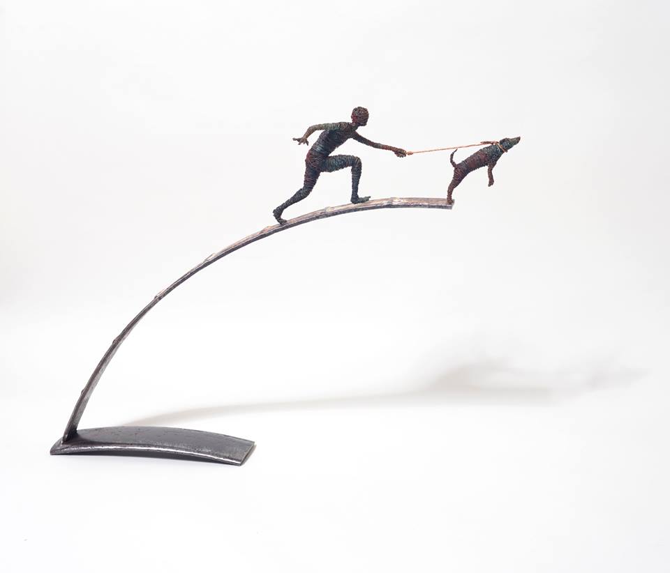 Previous Image Next Image Where My Dog Takes Me SOLD Where My Dog Takes Me – Wagon Wheels and Wrapped Copper Wire 18″H x 25.5″L x 6″W
