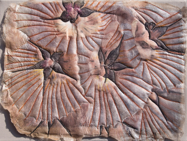 Previous Image Next Image Pincusion Pods Artists Photograph Printed on Fused Silk. Enhanced with Coloured Pencil Machine and Hand-Stitched and Quilted 10×13 by Karen Selk