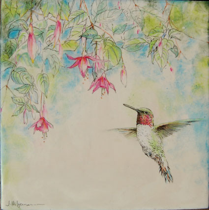 Previous Image Next Image Anna’s Hummingbird SOLD Anna’s Hummingbird – Encaustic 8″x8″ by Judy Hilgemann.