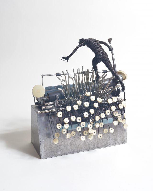 Previous Image Next Image Deadline SOLD Deadline – Vintage Typewriter Parts, Plate Steel and Wrapped Copper Wire, 14″H x 12″L x 10″D