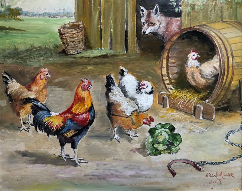 Previous Image Next Image When the Dogs Away When the Dogs Away – Framed Oil on Birch Panel, 18″ x 24″ by Will Millar. $1500