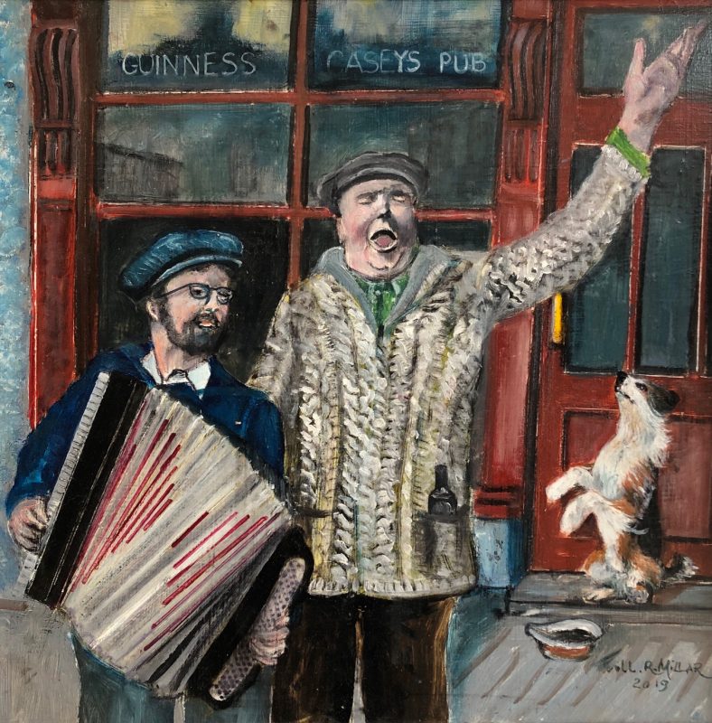 Previous Image Next Image Buskin for Pint Buskin for Pint – Framed Oil on Board, 16″ x 16″ by Will Millar. $850