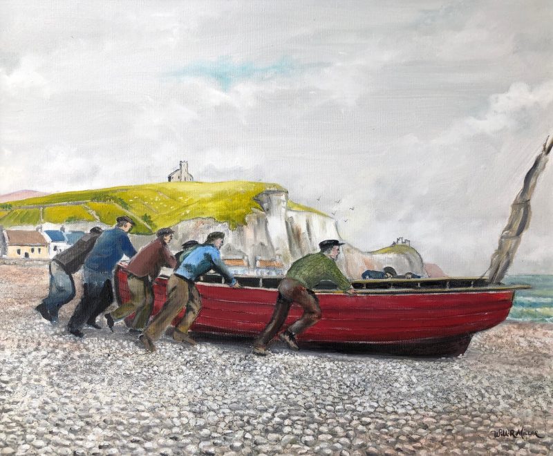 Previous Image Next Image Launching the Dory Launching the Dory – Framed Oil on Canvas, 20″ x 24″ by Will Millar. $1500