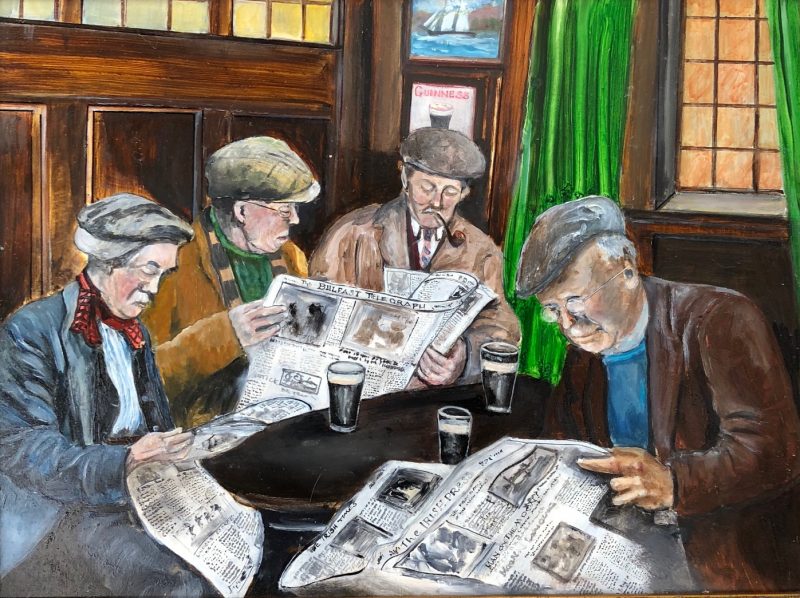 Pub News – Oil on Board 18″ x 20″ Framed $1250