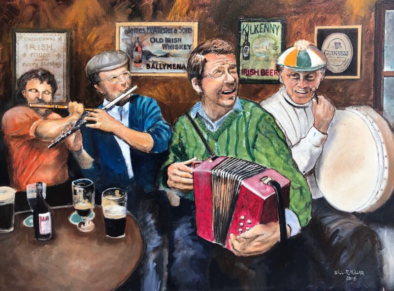Previous Image Next Image Music Session at the Crosskeys Pub Music Session at the Crosskeys Pub – Oil on Canvas 20″ x 24″ by Will Millar. $1500