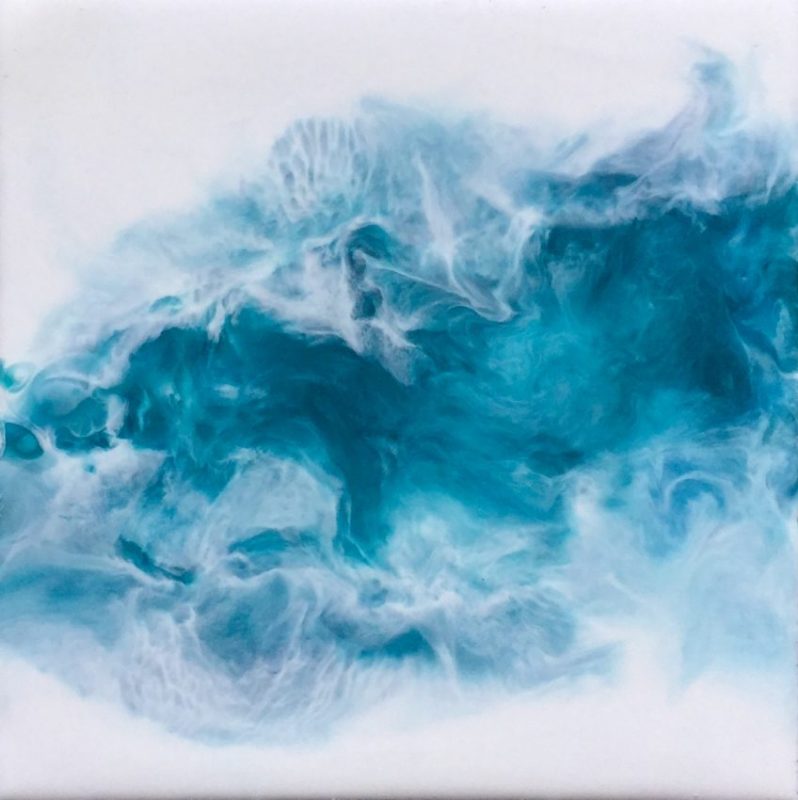Kinetic – Aqua #2 Encaustic/Mixed Media 5″x5″ $160